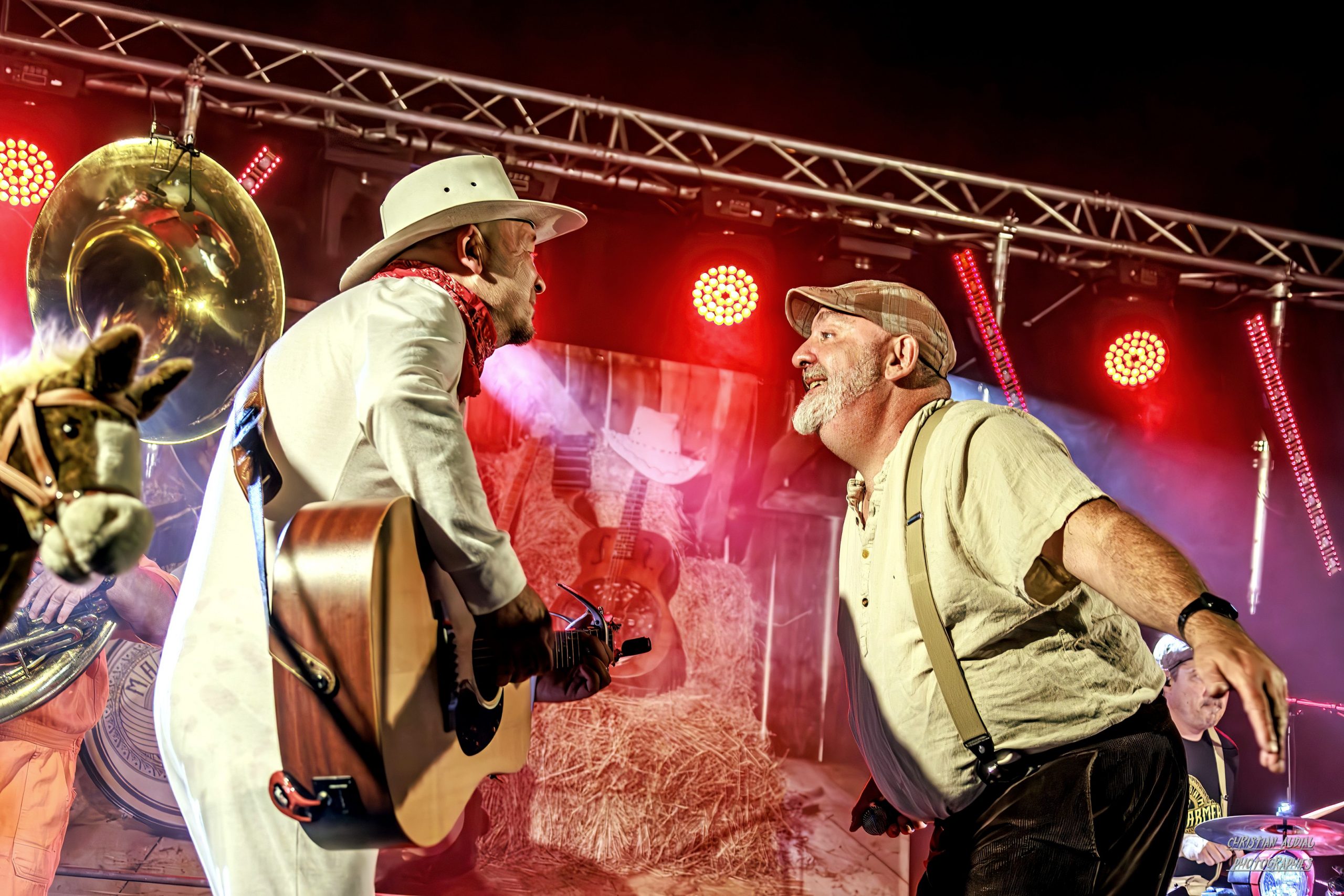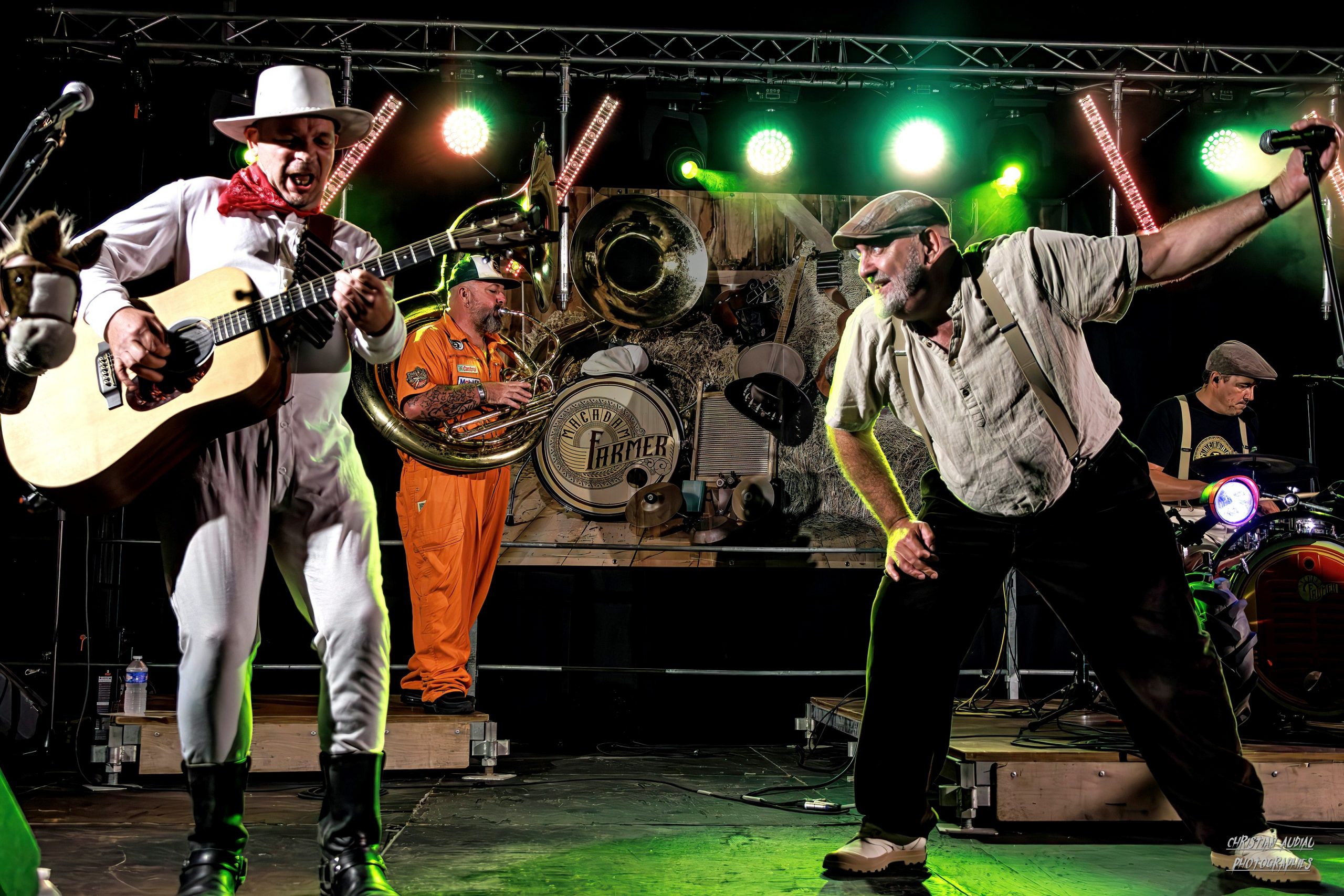 MACADAM FARMER vous emmènera dans l’univers de la Nouvelle Orléans ou de la musique country pour finalement vous inviter à écouter des arrangements à la sauce barbecue autour de standards de la pop music comme les Bee Gees, ACDC, Genesis, Prince, Queen, Boney M…