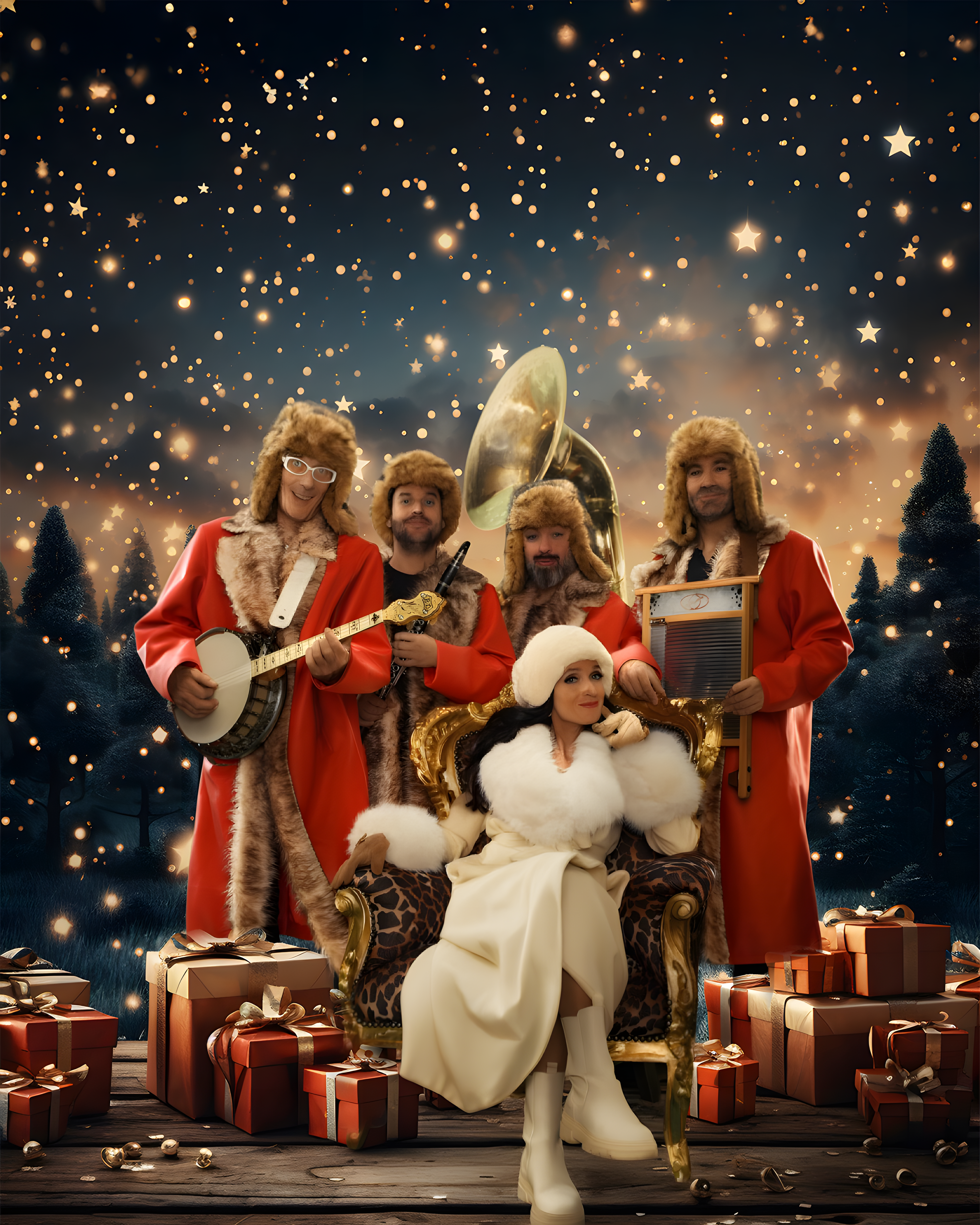 En costumes scintillants, les 4 musiciens et leur chanteuse créent une atmosphère chaleureuse où se mêlent nostalgie et émerveillement, tant pour les Marchés de Noël et festivités municipales, ou les animations pour centres commerciaux que les événements privés et festivités d’entreprise…